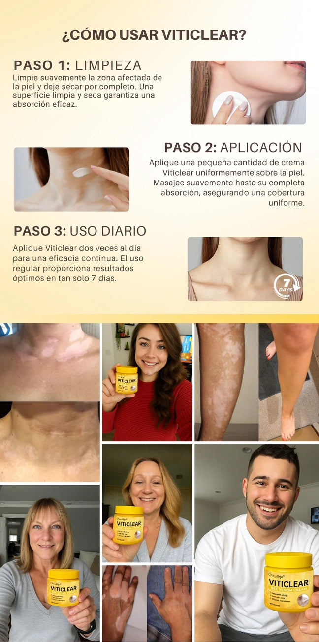 Sí. Viticlear también puede ser usada para manchas hipopigmentadas o zonas donde la piel perdió color por exposición solar, cicatrices o irritaciones.